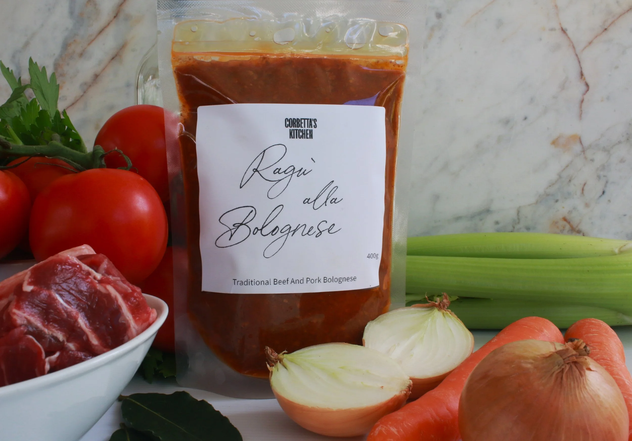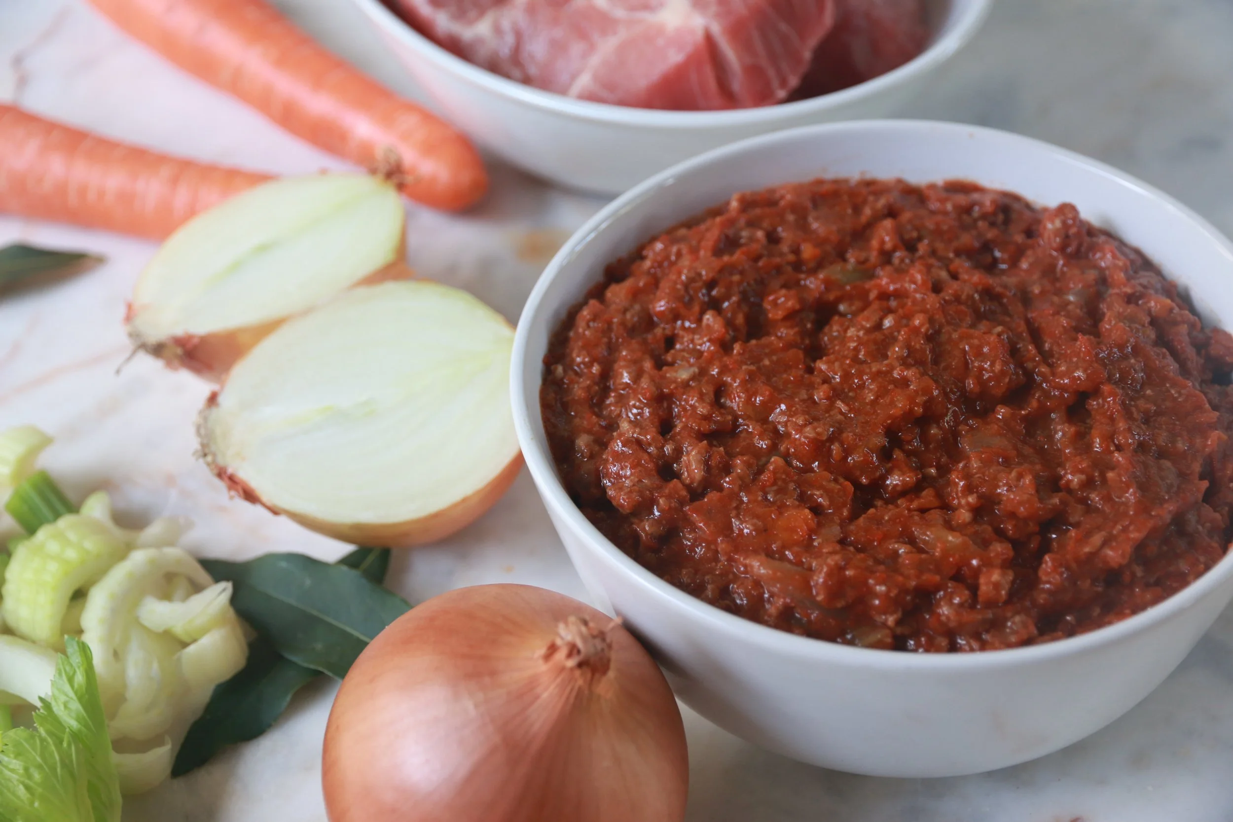 Beef, Pork, Celery, Carrots, Onions, Tomato, Red wine, Salt, Black Pepper, Bay Leaf